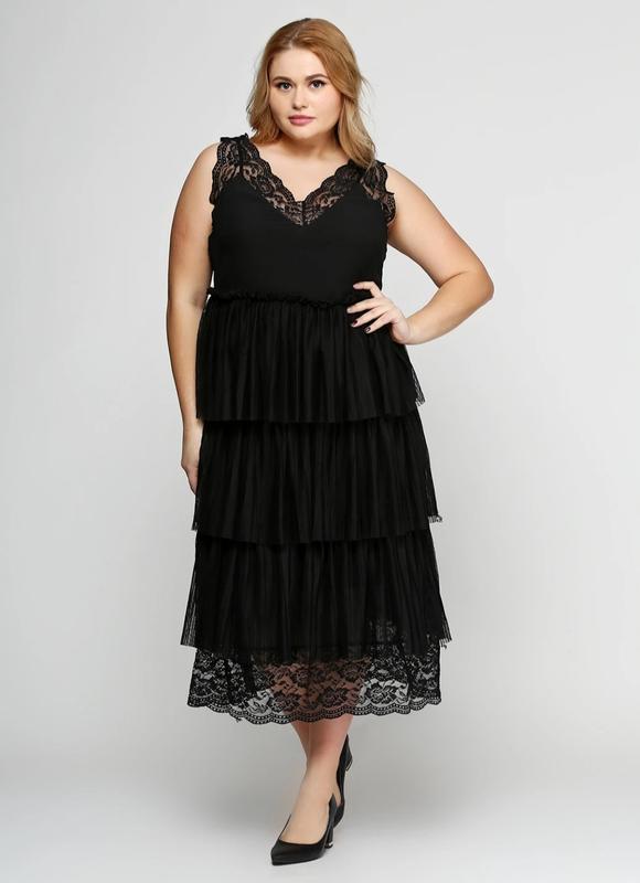 Красиве вечірнє плісироване плаття міді H&M з мереживом. Розмір по бирці 44 (XXL).