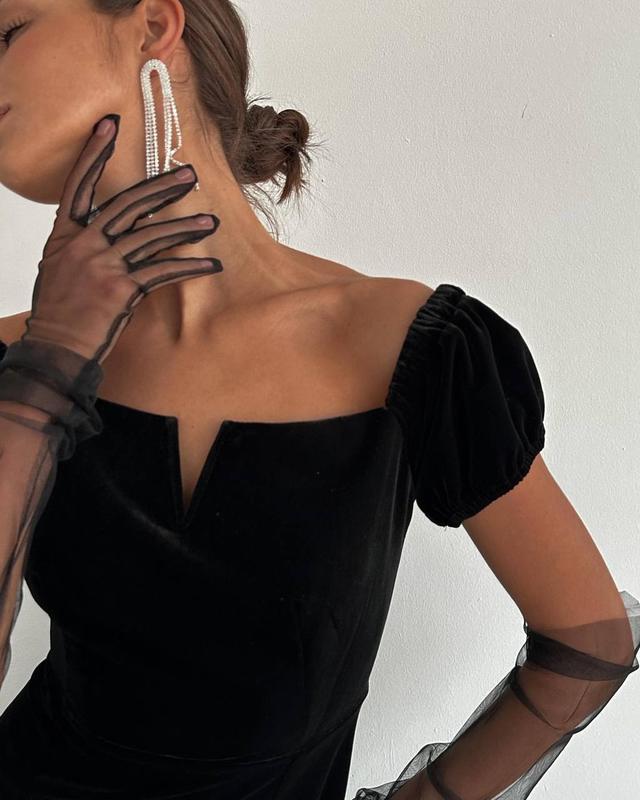 Маленька оксамитова сукня з бахрамою із каміння
