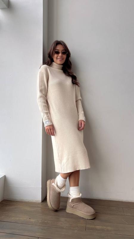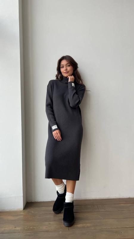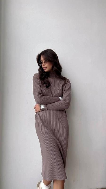 Базова тепла довга сукня міді нижче коліна в рубчик з начосом🔥