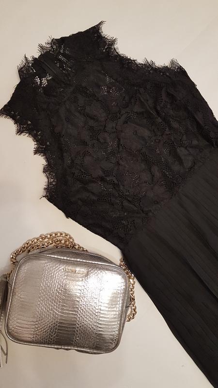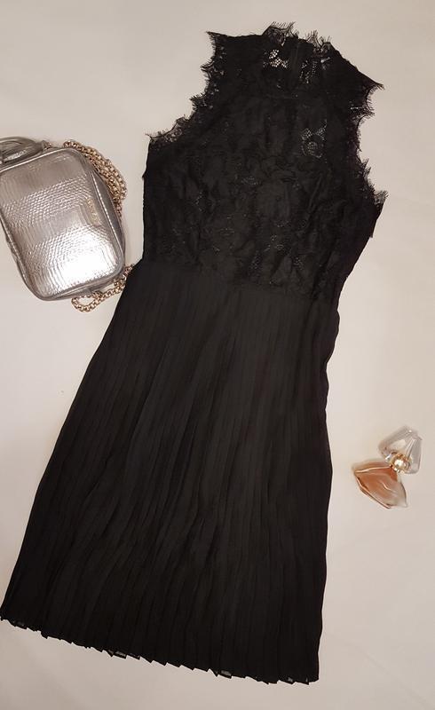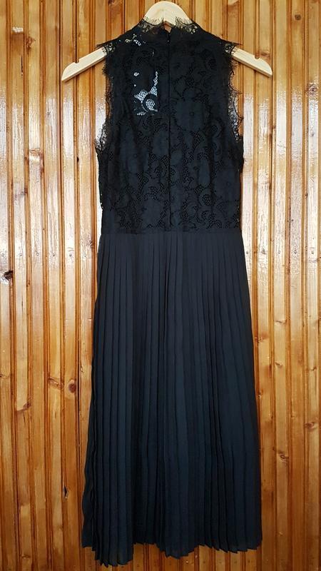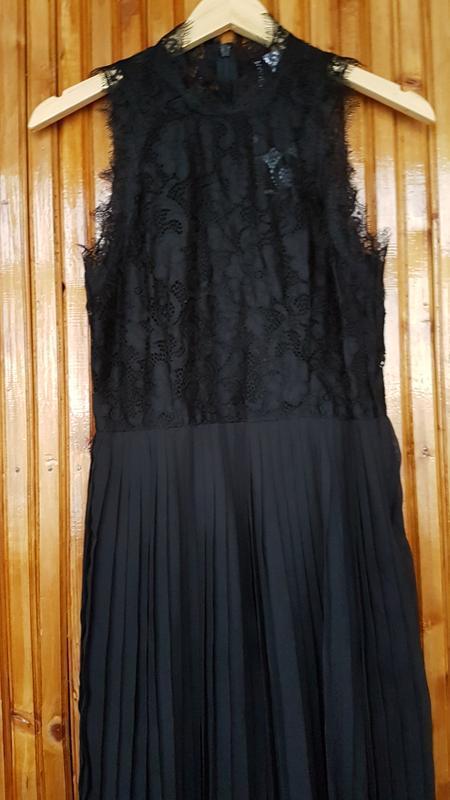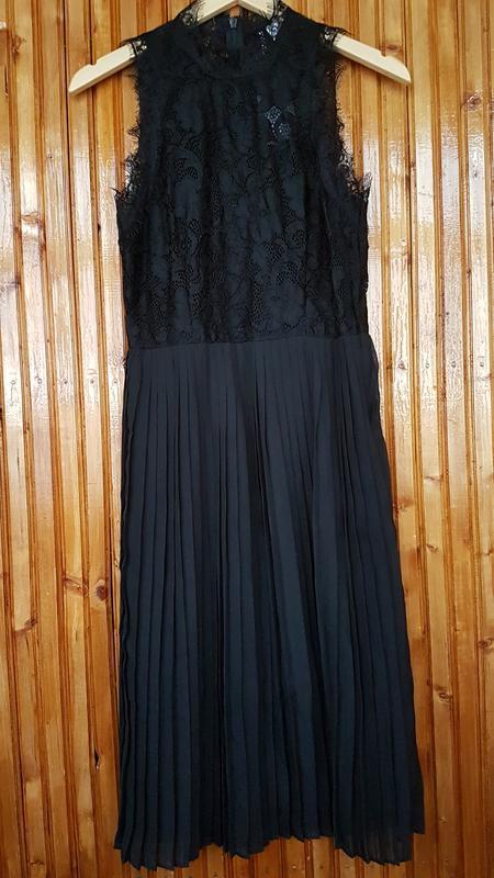 Дуже красиве і ніжне вечірнє, випускне плаття міді H&M без рукавів з мережива з "війками" і плісированою спідницею. Розмір в наявності 44. Потаємна блискавка ззаду. На підкладці, під мереживом підкладка з тоненької сітки.