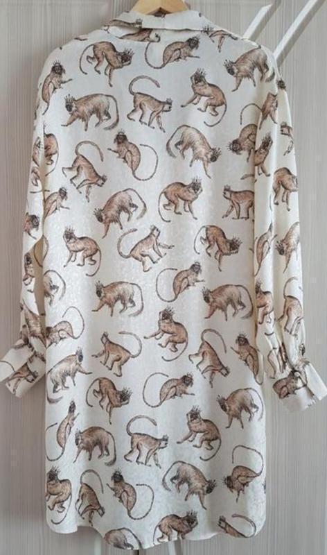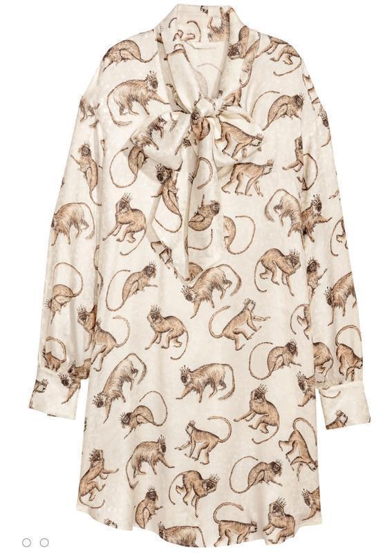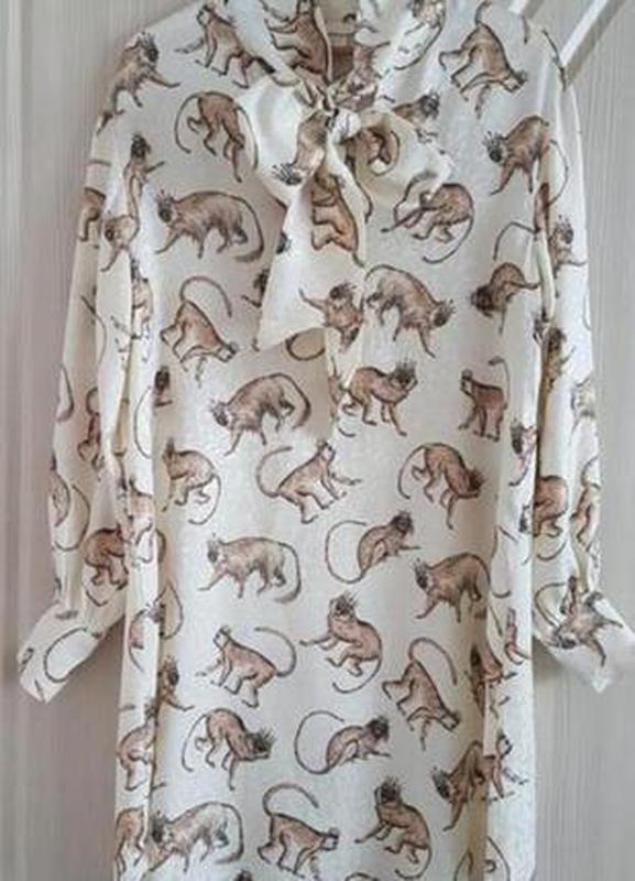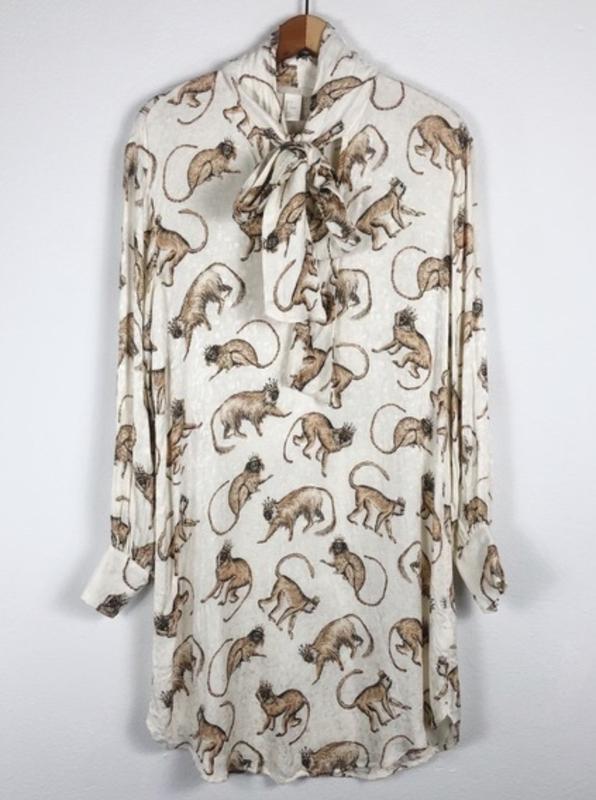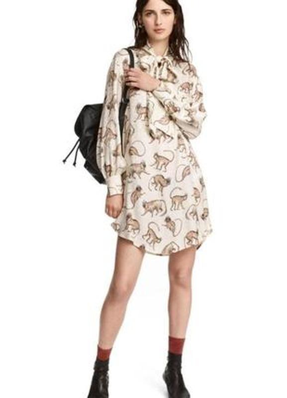 Стильне плаття H&M з мавпочками. Розмір в наявності 38. Лінія плеча приспущена, пишні рукави з манжетами на гудзику. На горловині можна зав'зв'язати бант.