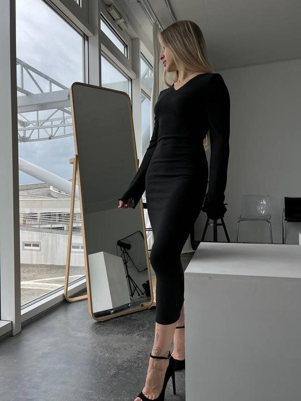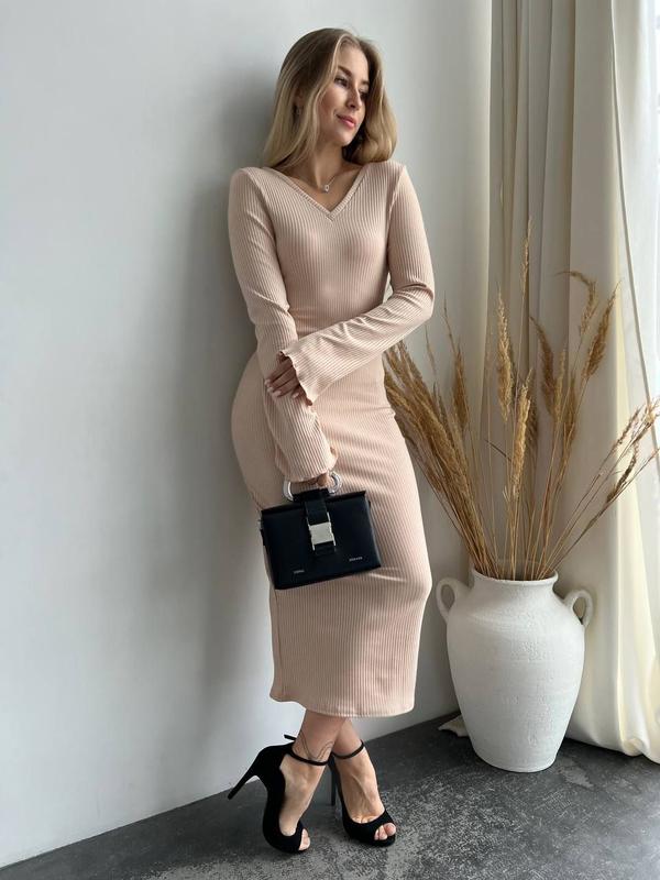 Жіноча сукня міді чорна бежева хакі оливкова демісезонна базова облягаюча