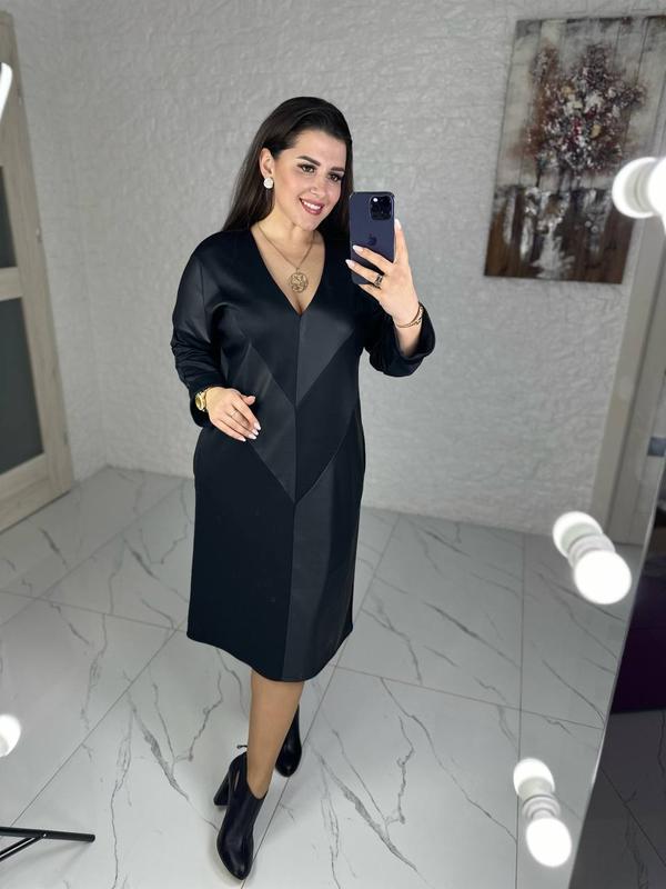 Ідеальна чорна сукня вільного крою зі вставками екошкіри