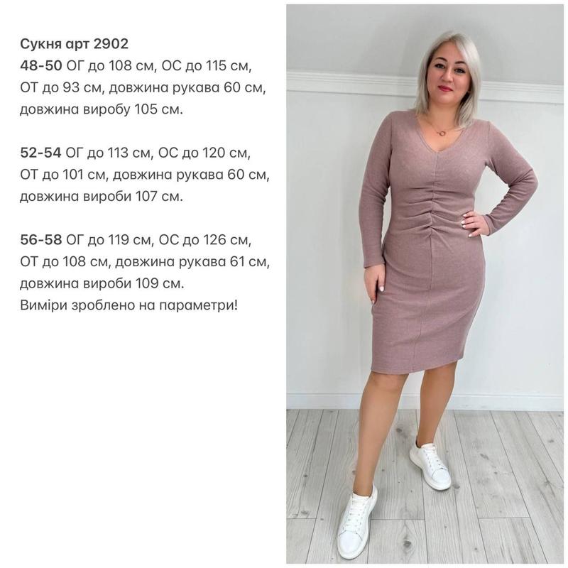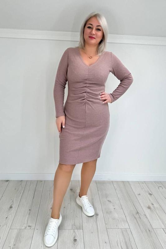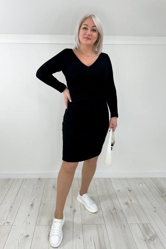 Сукня обтяжка з V-вирізом, довгий рукав. Спереду резинка, що стягується у візерунок-складки.