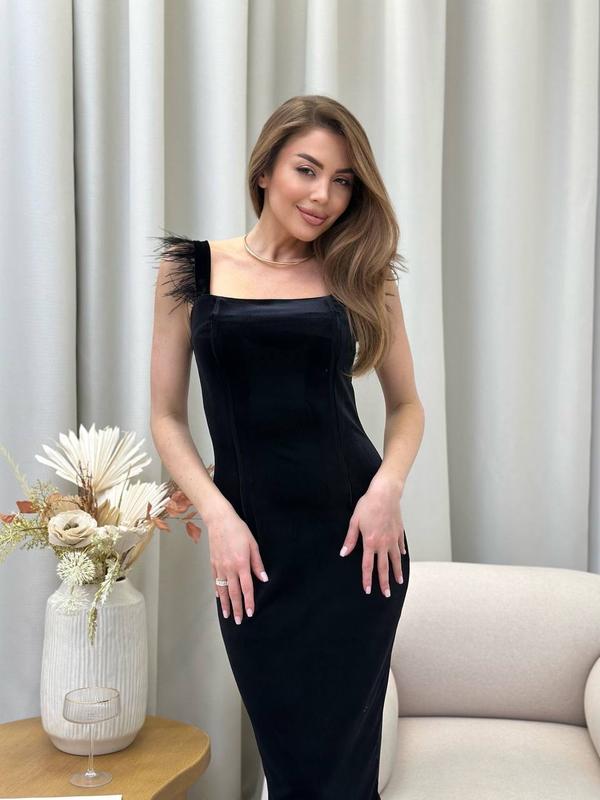 Сукня оксамитова оксамит по фігурі облягаюча комбінація плаття футляр відкриті плечі рюшка міді довга