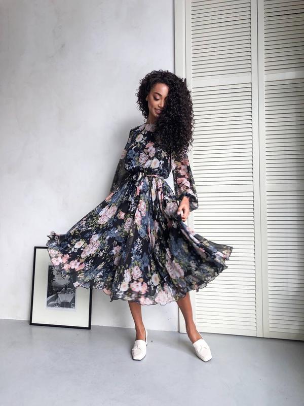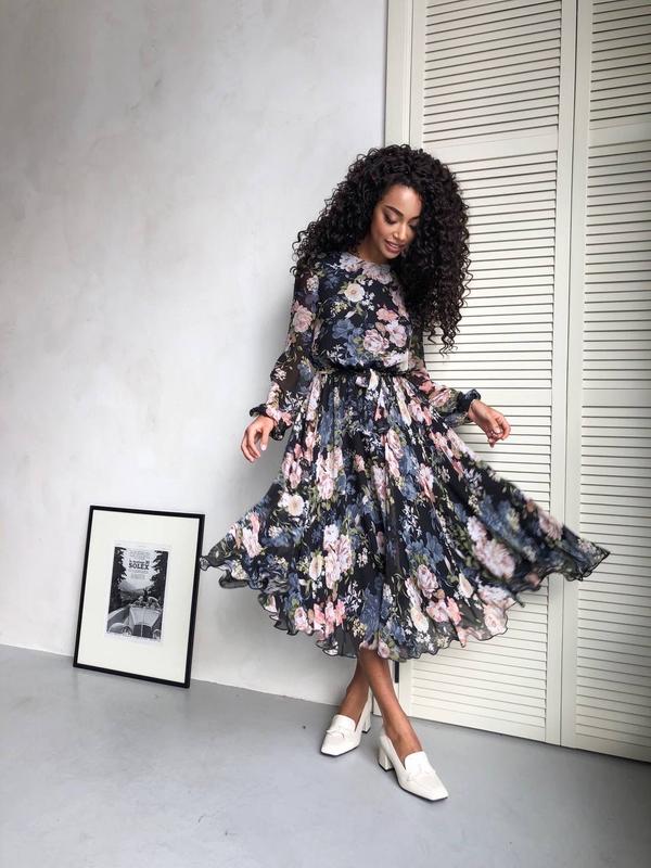 Сукня "Венеція "Розмір S,M,LТканина ніжний шифон вінді Туреччина, якість люкс на трикотажній підкладці✔️Заміри: Довжина по центру спинки 120 см. Довжина плеча 10,5 см. Довжина рукава 67 см