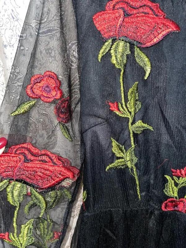 Прикрашена вишивкою червоних троянд , які виконані по принципу вишиванки гладдю,