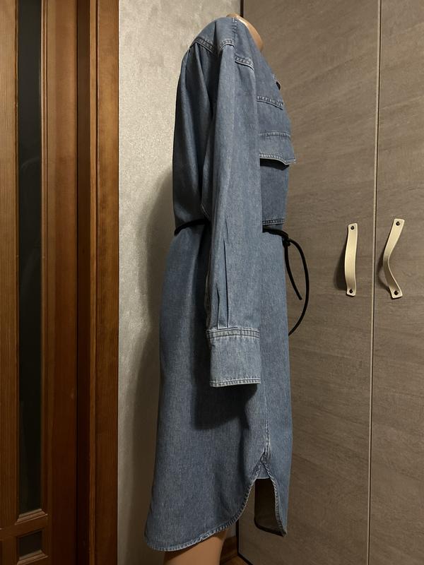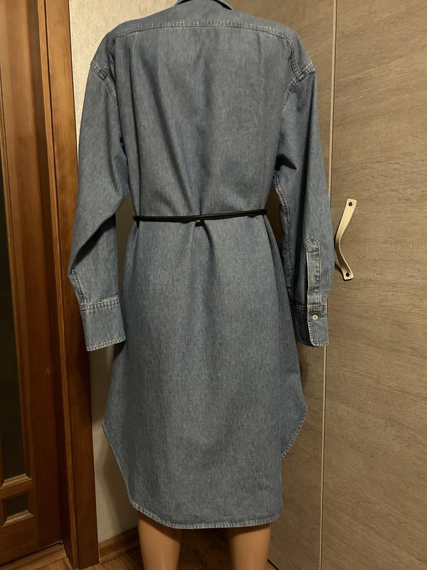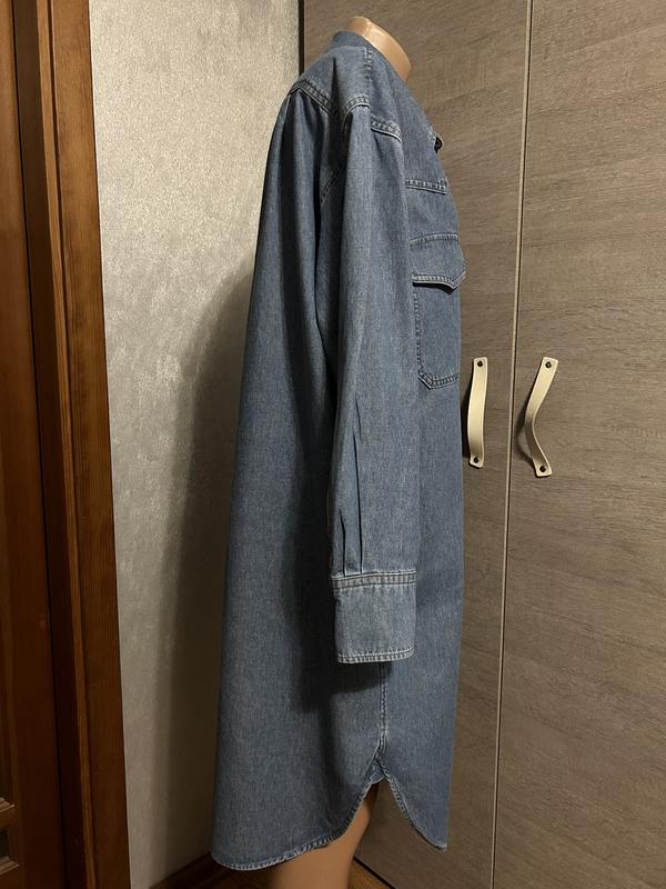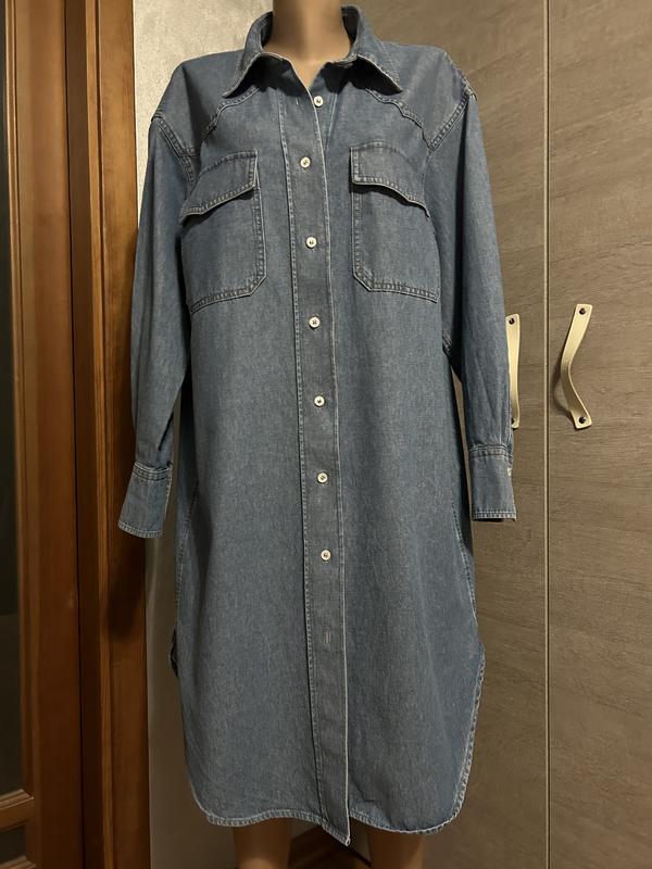 Сукня сорочка з цупкого деніму ніжного блакитного кольору від ARKET, розмір 38, але краще орієнтуватись по замірам. Має дві нагрудні кишені, можна під пасок, та носити як літній тренч. Плечі 52Рукава 60 Груди 68Стегна 69Довжина 107