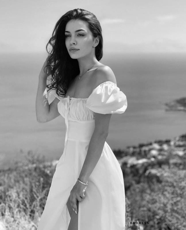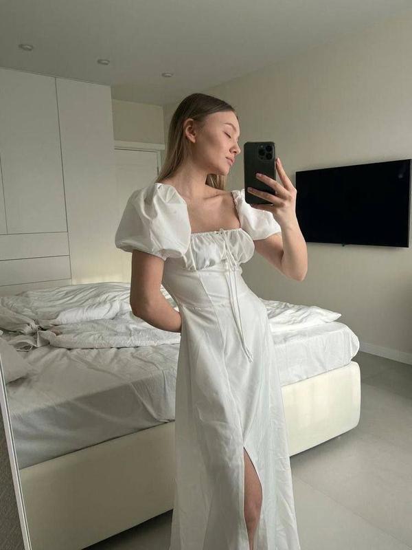 Неймовірно жіночна сукня міді з розрізом та ефектним бюстом