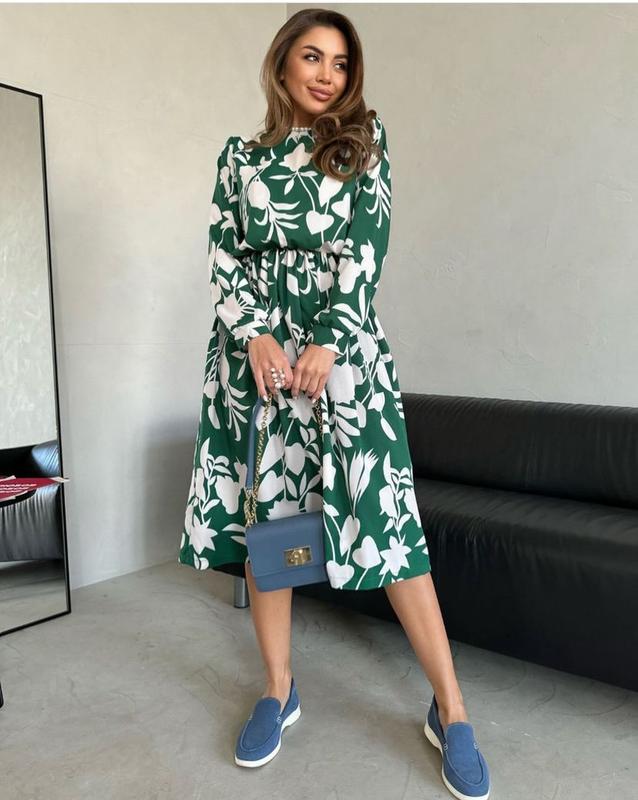 Розміри: S, M, L, XL, XXL, 3XLДовжина: 112смПринтоване плаття із софту з гумкою на талії. Модель з бічними кишенями та закритою горловиною на гудзику.Ціна: 690 грн