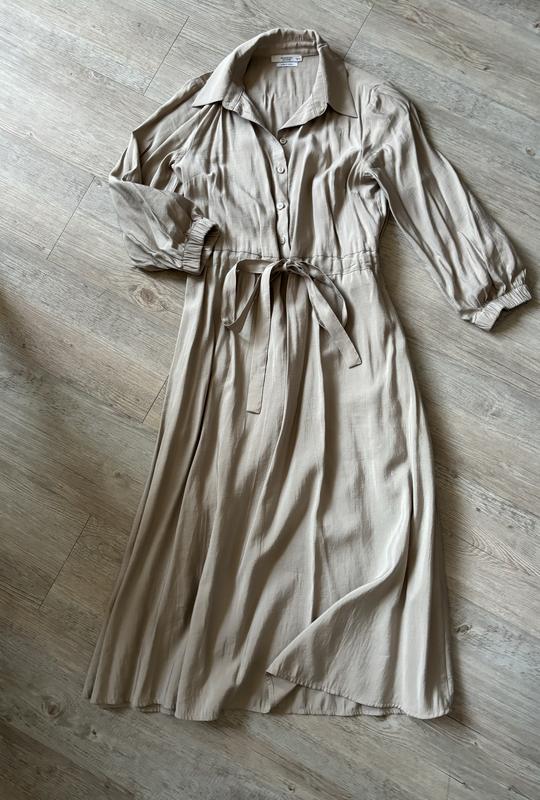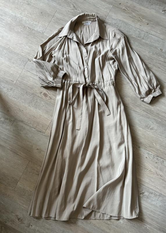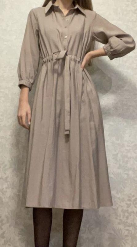 Сукня плаття з еко шкіри кожи з поясом міді базове бежеве