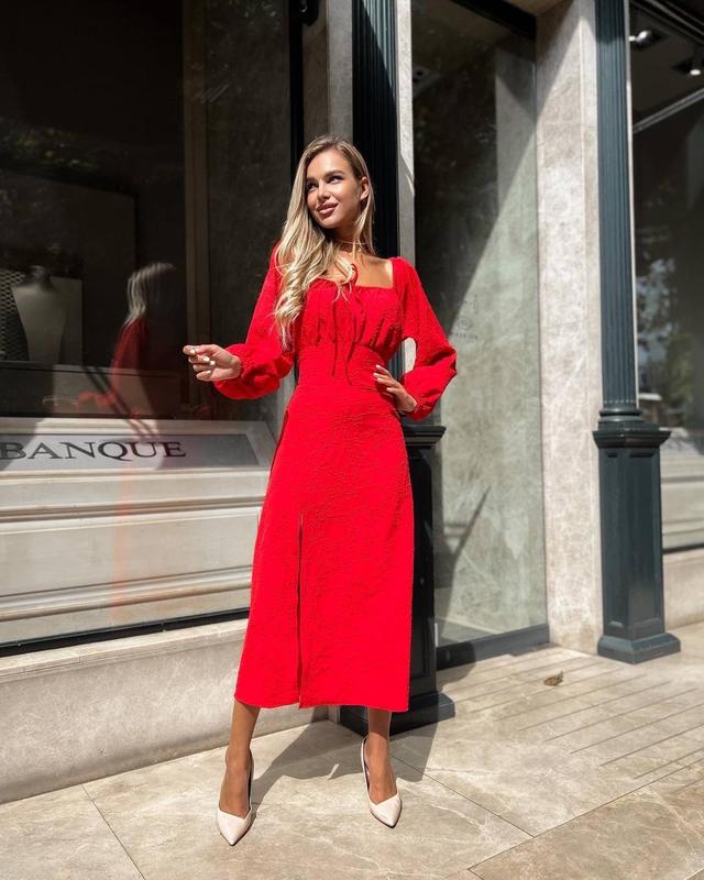 Жіноча сукня міді женское летнее платье миди літня,нарядна святкова синя червона