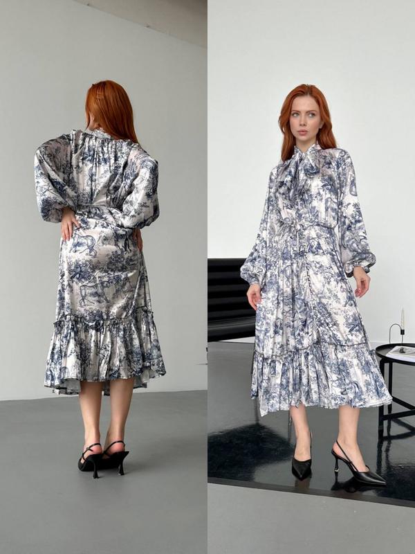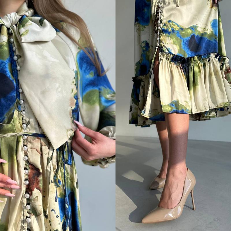 Ніжна сукня в довжині міді, з акцентним бантом у 5-ти кольорах🌺Мод: 2328Колір: чорний, білий, синій, зелений, бронзаРозмір: універсал 42-46Тканина: шовк Армані
