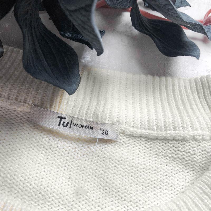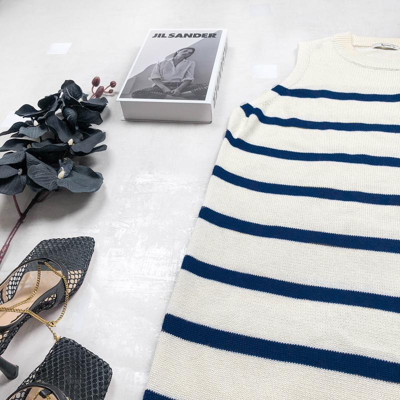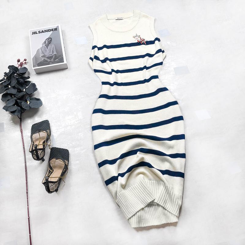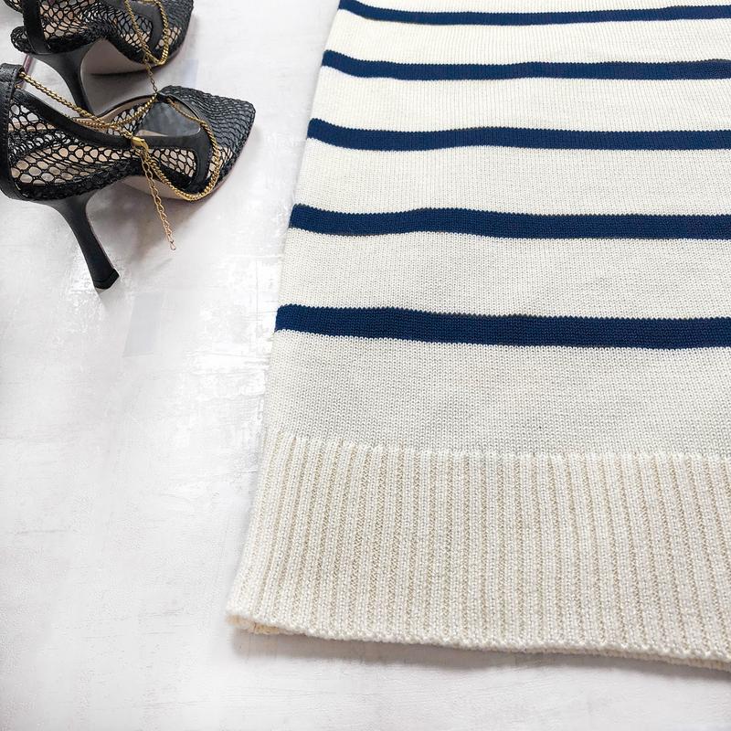 Шикарна вʼязана сукня TU кольору айворі міді довжини у смужку темно-синього кольору (бавовна).