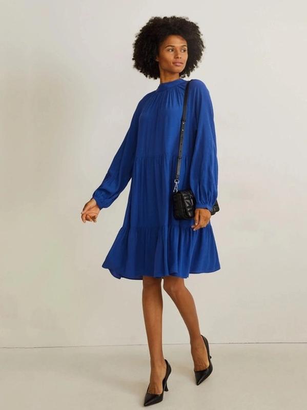 Синя сукня c&a premium ярусна міді з довгим рукавом електрик