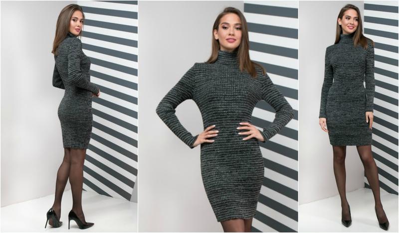 Тепле в'язане однотонне плаття для офісу на кожен день Basic