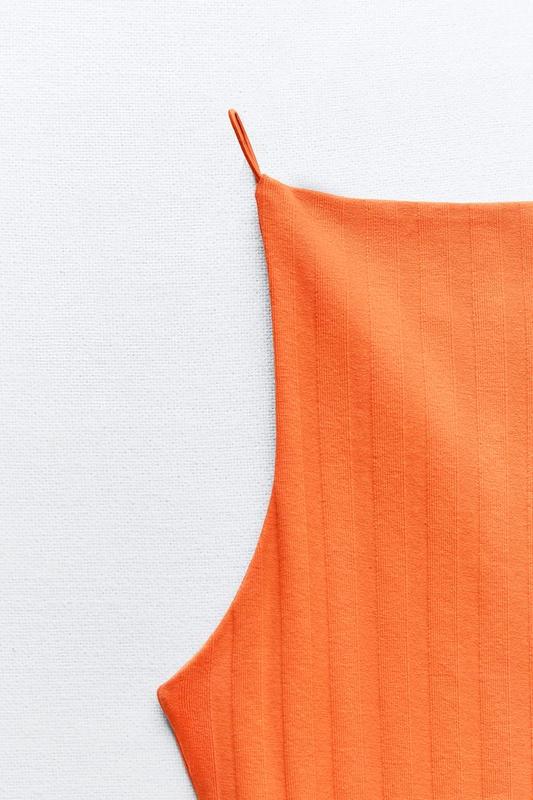 Оранжевое льняное платье сарафан на тонких бретелях миди zara