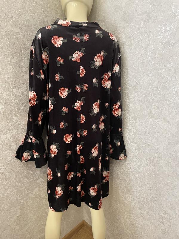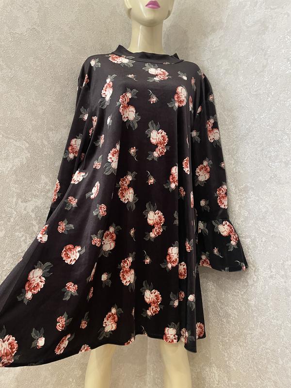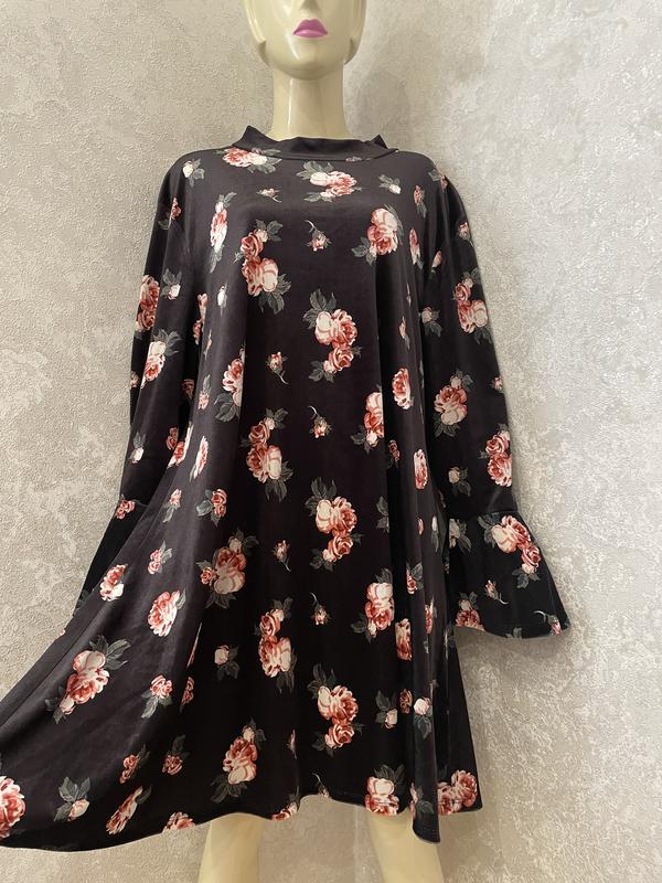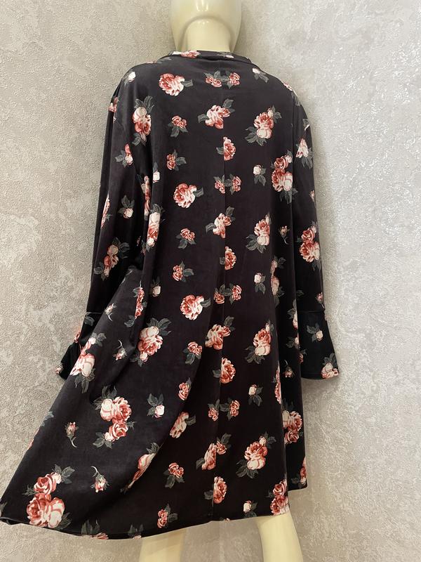 Батал! Шикарное велюровое платье в цветочный принт!!!Указан размер 22, подойдет на 2XL-3XL-4XL-5XL, ориентируйтесь на замеры:Длина от плеча - 96,5 смДлина рукава - 62 смПОГ - 63 см (тянется до 85 см)Полуобхват по низу - 103 см