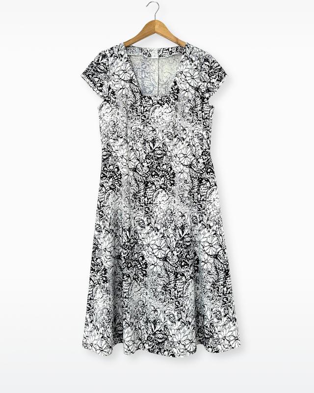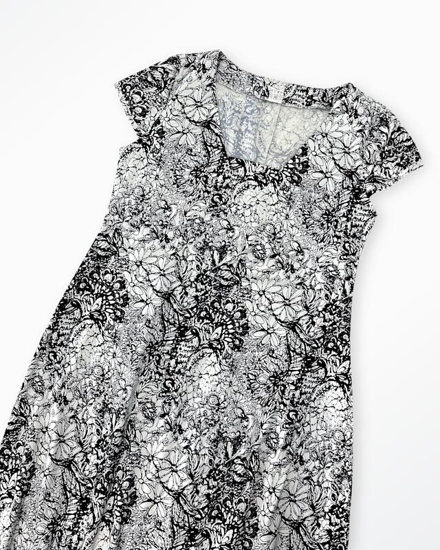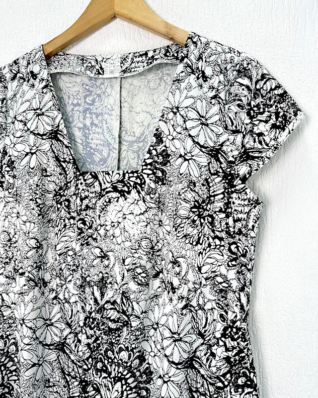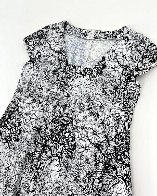 Жіночна і романтична. Чорні квітчасті візерунки на білому – підкреслять Вашу ніжність і смак. І в офіс, і на вечірку – завжди доречна буде.