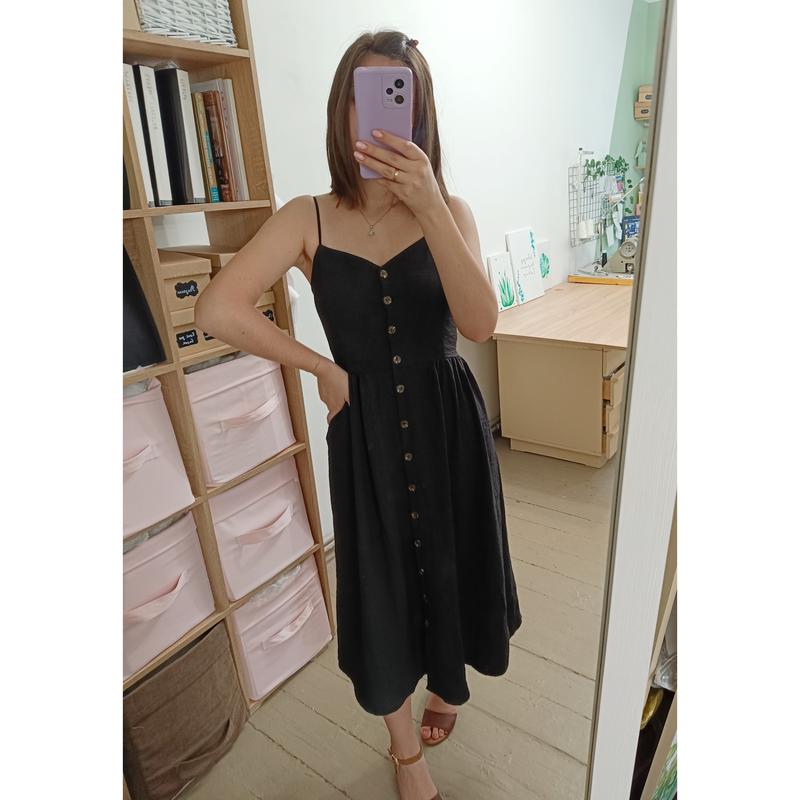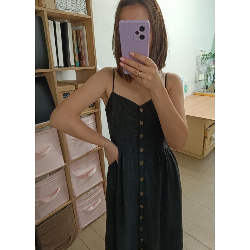 Даже гарна сукня від H&M з відкритим плечиками, на спинці резиночка, бретелі регулюються, дуже приємна фактурна тканинка. Заміри на фото.