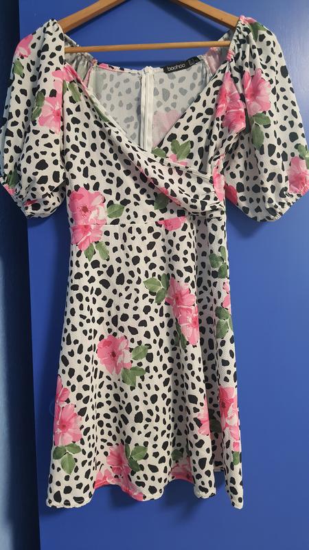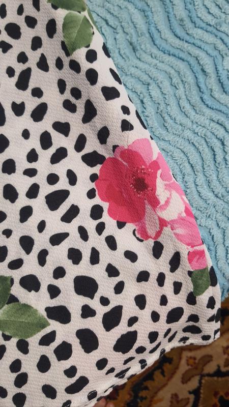 Дівчата, ну дуже крута сукня, така літня, смачна та яскрава. Гарно підкреслює груди і талію, тягнеться. Має невеличку затяжку внизу по канту сукні (останнє фото), але завдяки принту в носінні не помітна взагалі.
