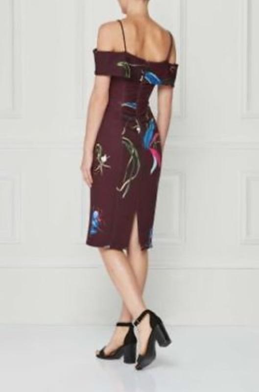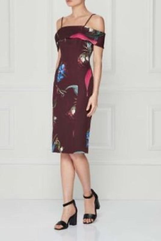 Гарне плаття міді на плечі прямого силуету з щільної сукню. По спинці акуратна драппировка. Щільна тканина прекрасно скоректує фігуру. Стан нової речі, з паперовою етикеткою. За всіма мірками при необхідності може трохи тягнутися. Напівобхват грудей - 54-56 см, Напівобхват талії - 50 см, Напівобхват стегон - 58-59 см, Напівобхват по плечах - 61 см, Довжина сукні з урахуванням бретелі - 110 див.)