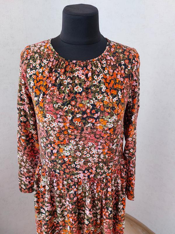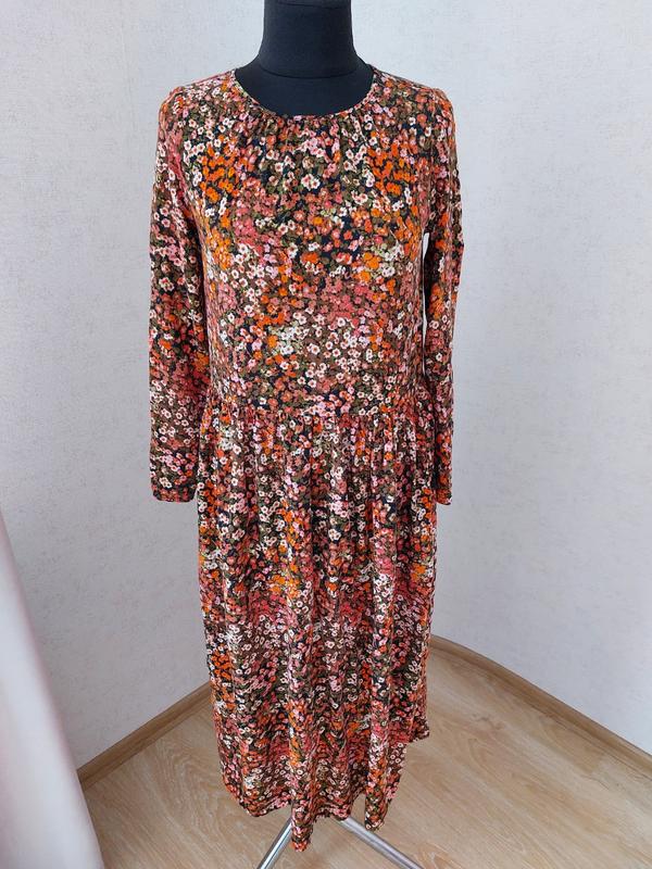 Красива сукня в квітковий принтПО грудей 45-46см ПО талії 46смДовжина рукава від плеча 57см Довжина сукні 118-119см100% віскоза