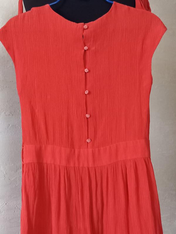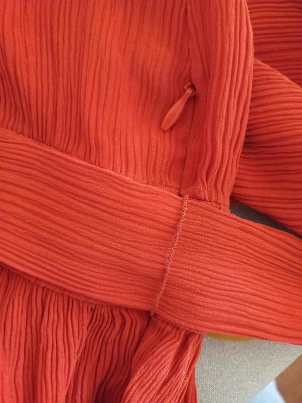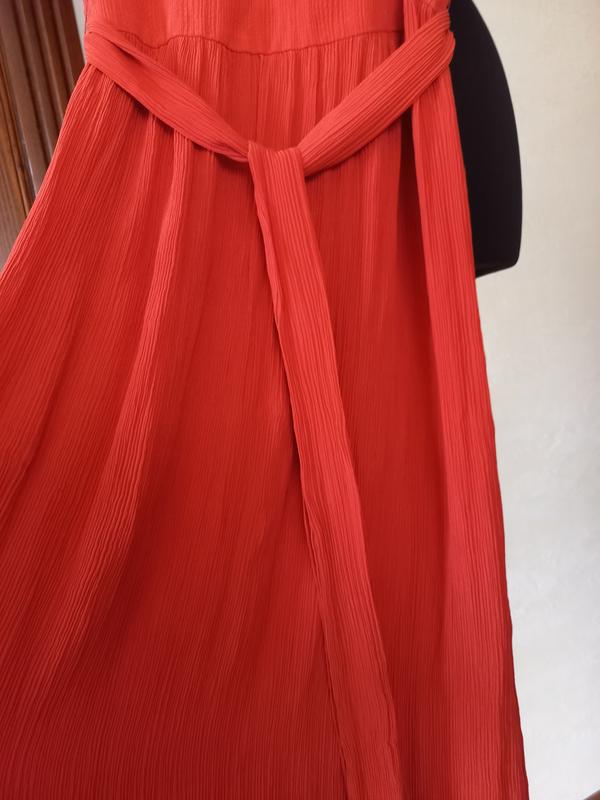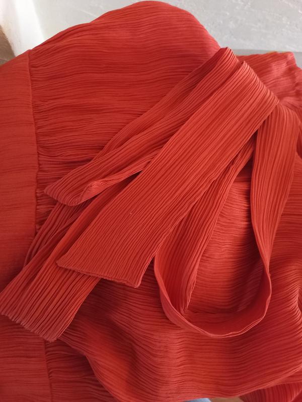 Мах Mara тканина оригінал креп шифон не просвічує колір благородний більше корал терракот на фото не передає . Жатка , довжина 130 ог 44 талія 33 до таліі 36 пояс 4 до низу 90 ос 50 тянеться. додатково є поясок завязується та тонюсельки петельки до нього інформація фото без проблем.