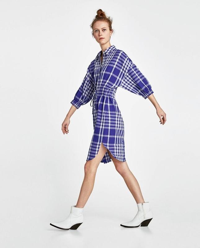 Сукня-сорочка zara з коміром та довгими рукавами.