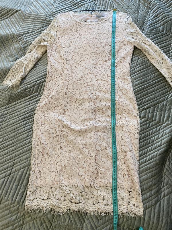 Плаття із ніжного мережива кремового або тілесного кольору, підійде на м або на л. На мене трохи завелике. Гарно сидить коли по фігурі, і коли трохи вільне. Стан ідеальний, без дефектів. Одягнуте двічі.