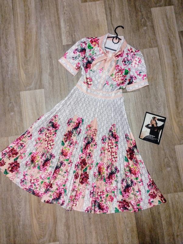 Жіноча шовкова сукня міді в квітковий принт | 840
