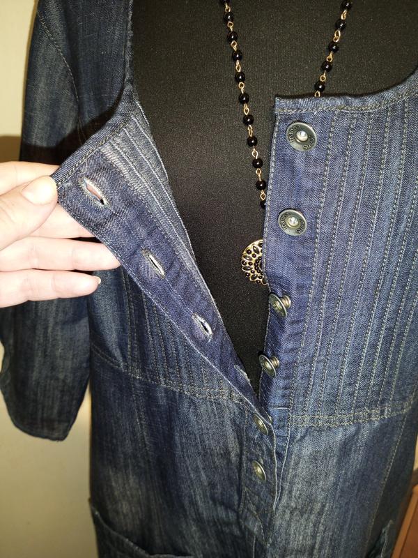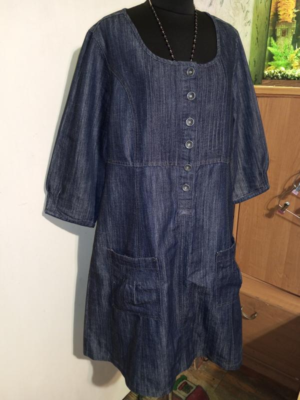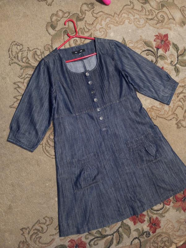 Стильное,джинсовое платье-трапеция на пуговицах,с карманами,в стиле бохо,датского бренда Fransa jeans.На бирке размер М,но ориентируйтесь по замерам: ПОГ 51/52см,ПОТ - по линии отреза - 47см,ПОБ-условно по низу карманов- 65см, ПО по канту -76см, длина от плеча 92см,длина рукава 44см Качественное,подойдёт на лето,тёплую весну-осень.
