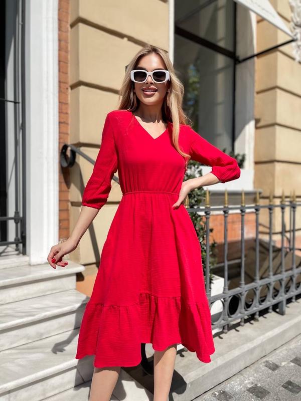 Жіноча сукня міді літня з рукавами,женское летнее платье миди с рукавами нарядное вечірня вечернее