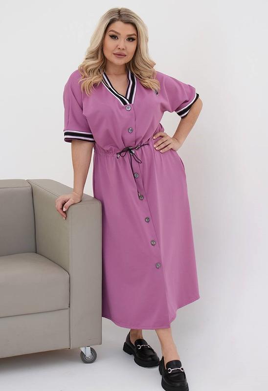 Плаття Модель 943VL Тканина: італійський трикотаж (якісна тканина, не скибить, Плаття-халат вільного крою повністю застібається на ґудзиках, на горловині та рукавах пришивний лампас, приспущений рукав до ліктя, талія вільного крою, на талії капелюшна гумка з фіксаторами (можна регулювати об'єм талії). Параметри моделі ОГ108, ОТ86, ОБ112, зріст 165 см, на ній одягнений розмір 50-52. Заміри виробу: Розмір 46-48 Обсяг грудей 116 Об'єм талії 112 Об'єм стегон 120 Довжина рукава від горловини 40 Бицепс 36 Довжина 121 Розмір 50-52 Обсяг грудей 124 Об'єм талії 114 Об'єм стегон 136 Довжина рукава від горловини 43 Бицепс 40 Довжина 125 Розмір 54-56 Обсяг грудей 132 Об'єм талії 126 Об'єм стегон 140 Довжина рукава від горловини 44 Бицепс 42 Довжина 122 Розмір 58-60 Обсяг грудей 140 Об'єм талії 132 Об'єм стегон 152 Довжина рукава від горловини 45 Бицепс 45 Довжина 123 Розмір 62-64 Обсяг грудей 146 Об'єм талії 144 Об'єм стегон 156 Довжина рукава від горловини 45 Бицепс 47 Довжина 128