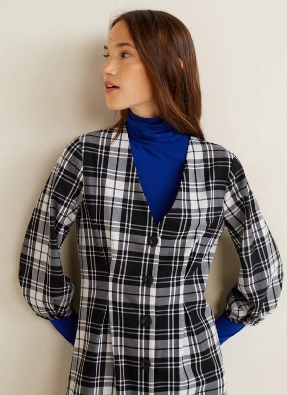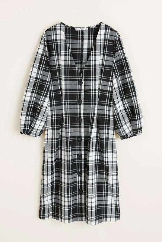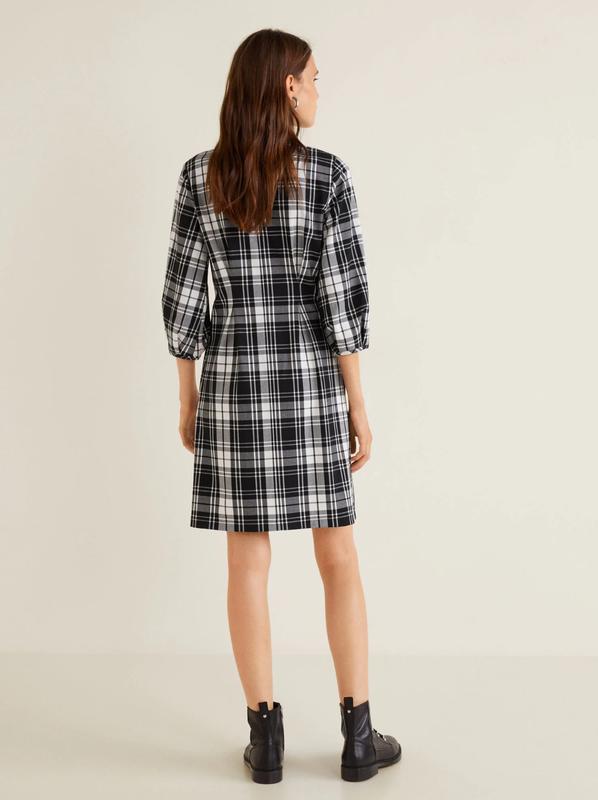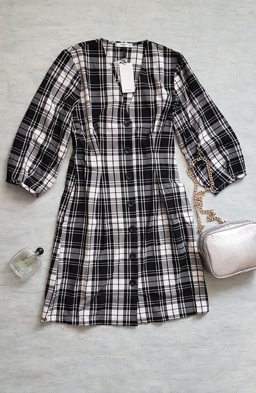 Міді плаття сорочка Mango в клітинку. В наявності розміри M і L. Спереду застібається на гудзики. В талії призібрано. По боках кишені.