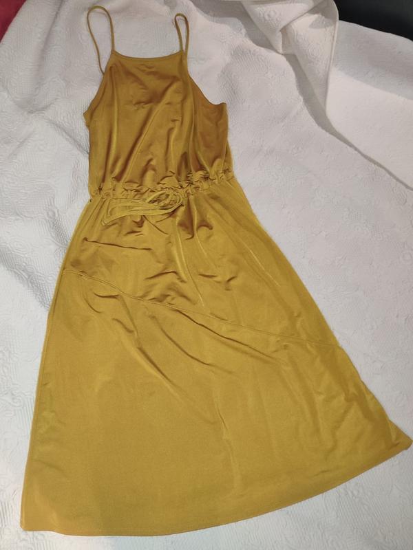 Літня сукня Zara, колір гірчиця. Ідеальний стан. Довжина по боковому шву 91 см, напівобхват грудей 45-60 см. Тканина тягнеться
