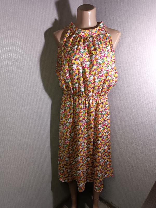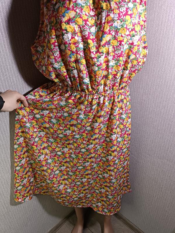Сукня міді нова з яскравий квітковий принт троянди.розмірзаміри:пог 53 смпот 39 см, чудово тягнеться резинка всередині довжина 106 см, до талії 42 см (до резинки)