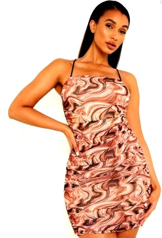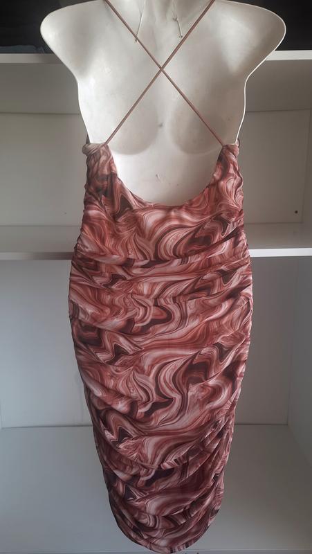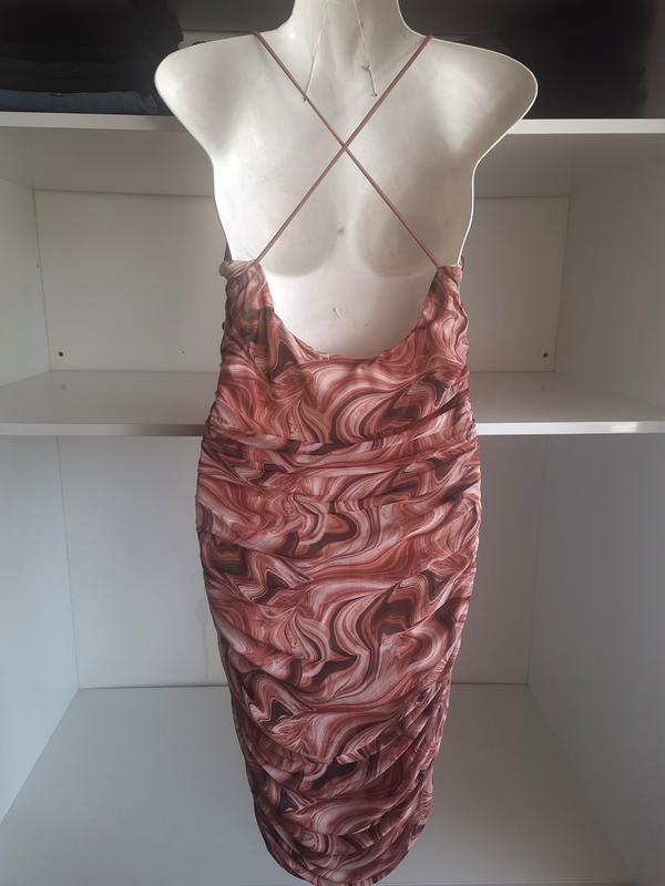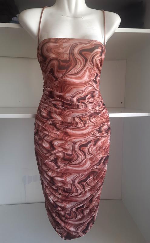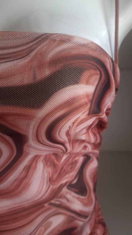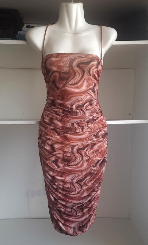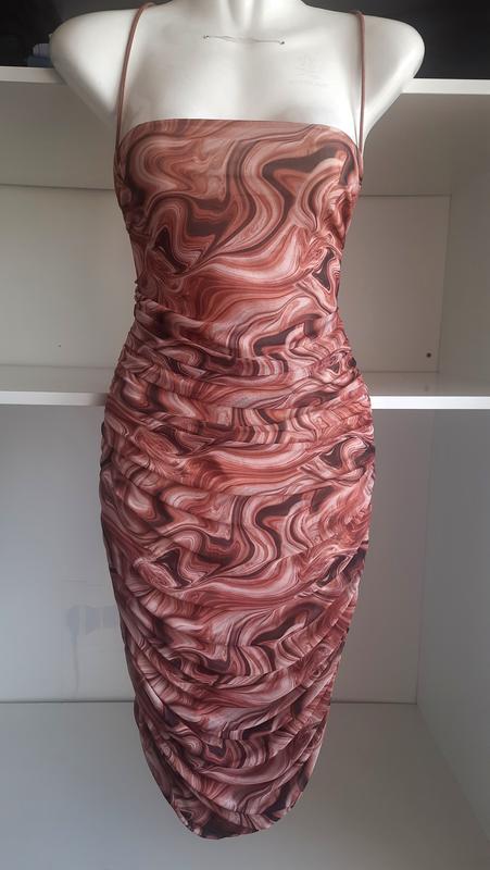 Легенька літня сукня в сіточку на тонких брительках, тканина добре тягнеться та не просвічує, має підкладку. Стан нової без дефектів. По бірці 12 розмір.ПОГ-40/55ПОТ-35/50ПОБ-40/55