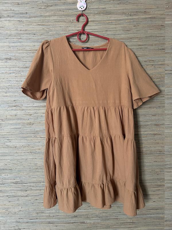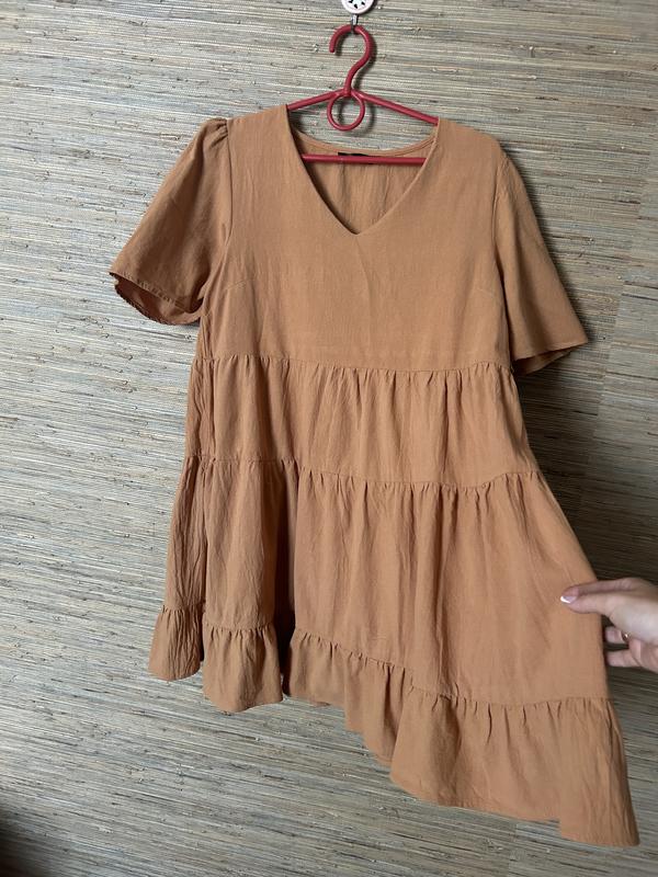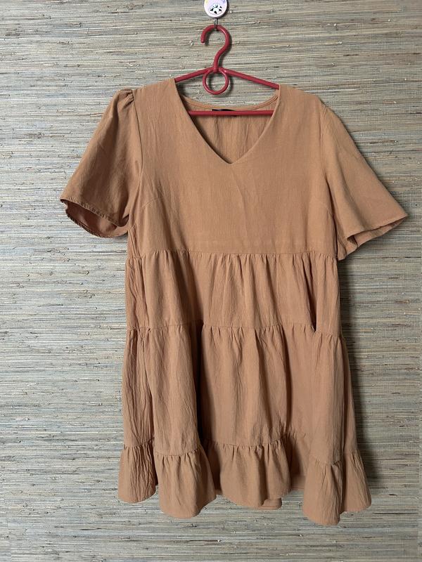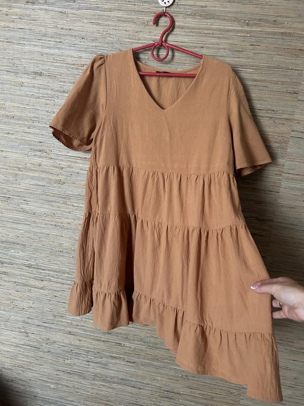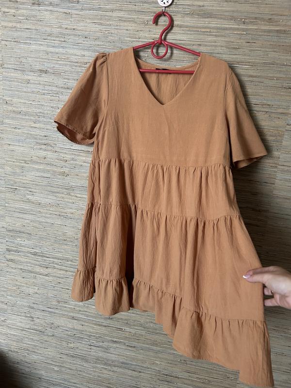100 лён! платье рубашка цвета охры от бренда esprit, размер 38 eur