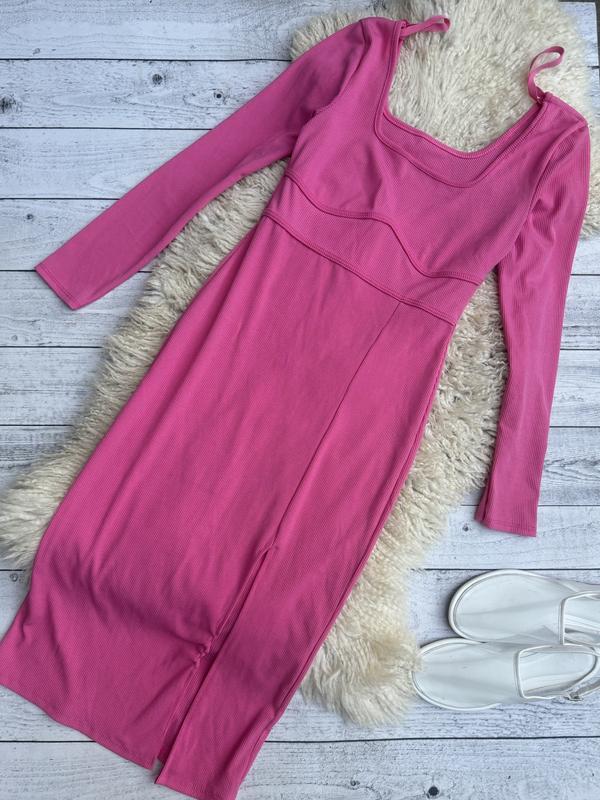 Сукня в рубчик рожева яскрава сукня по фігурі