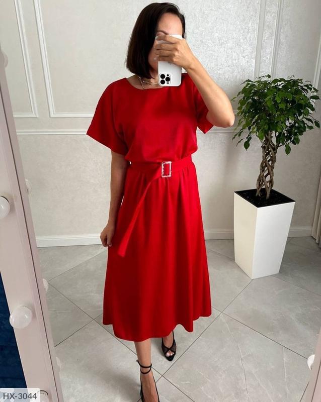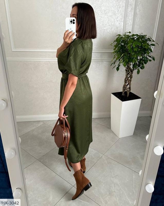 Тканина жатий шовк ТуреччинаВиробник УкраїнаСукня в комплекті з поясомКольори: чорний, червоний, зелений, сталевий і хакі