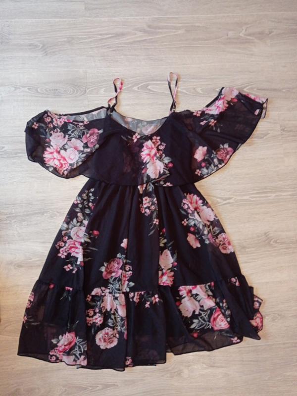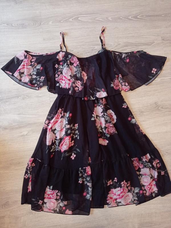 Плаття жіноче чорне блакитне рожеве квітковий принт