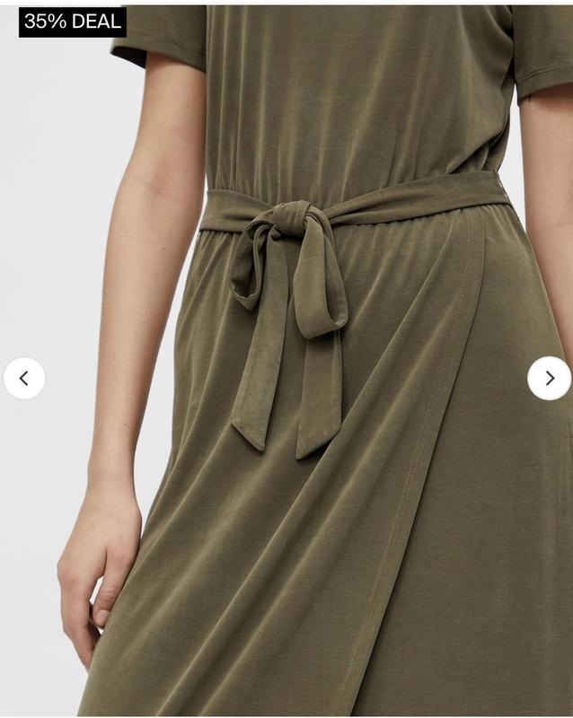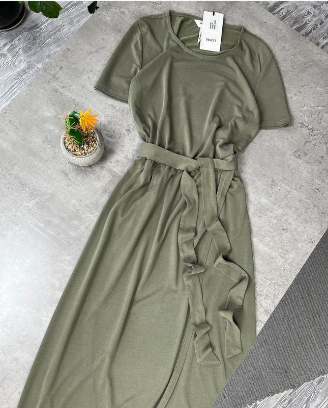 Довга сукня оливкового кольору Object в складі тканини: 65% модал , 35% п/е. Дуже приємна на дотик, практична. Спідничка на ,»запах» на талії резинка, тканина трохи тягнеться.