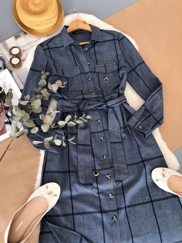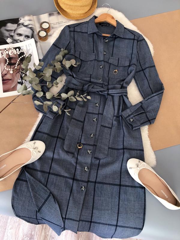 ❗️ціна 450 грн❗️ Фантастична сукня сорочка в клітинку довжини міді з поясом