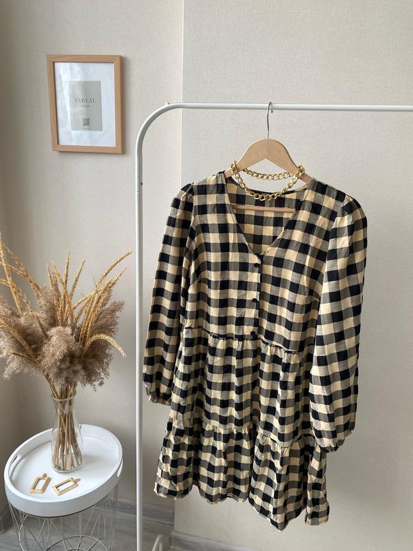 Ярусна сукня міді в клітинку
