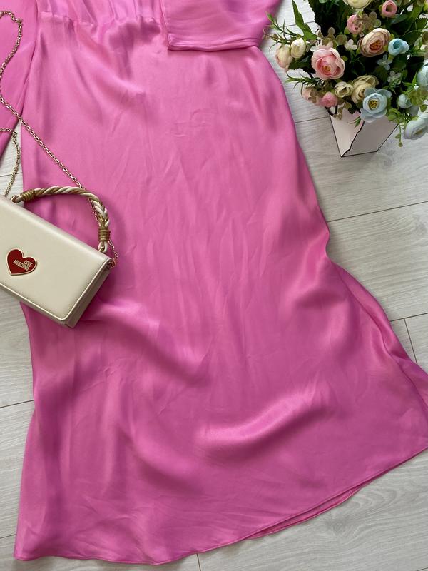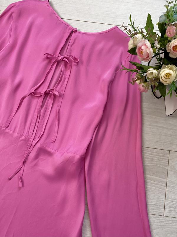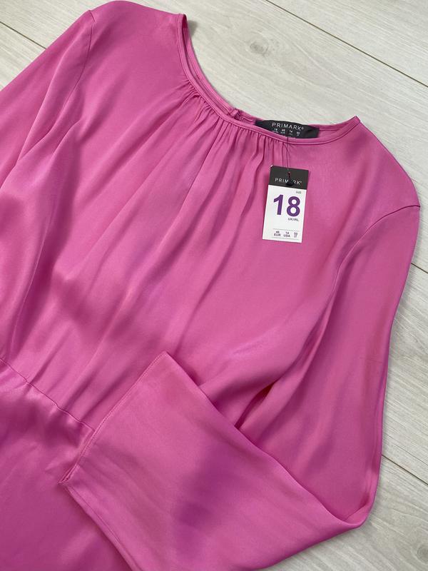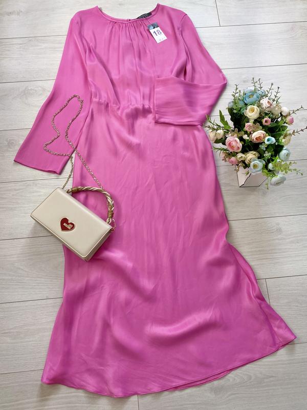 Натуральна сукня міді гарного кольору Primark, йде на розмір 16 (вказано 18 (Eur 46), див. заміри), красива спинка на зав’язках, збоку на блискавці, тканина з сатиновим переливом (віскоза).