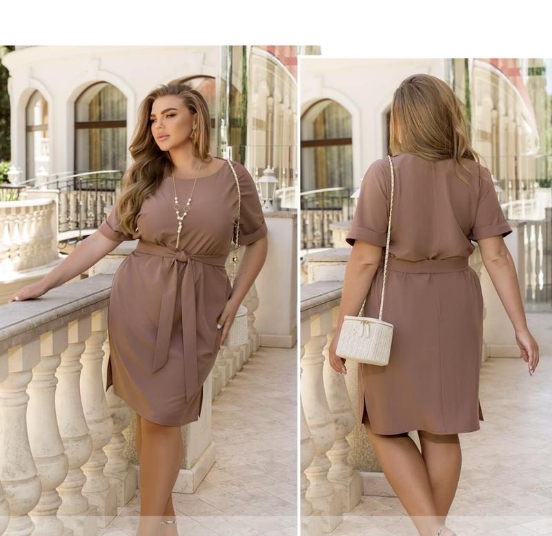 Ця сукня має прямий крій і довжину міді, ідеально підходить як для офісу, так і для вечірніх заходів. Короткий цільно кроєний рукав з манжетами додає шарму і комфорту. В комплекті йде трикотажний пояс, який підкреслить вашу талію і додасть витонченості вашому образу