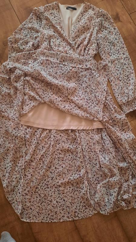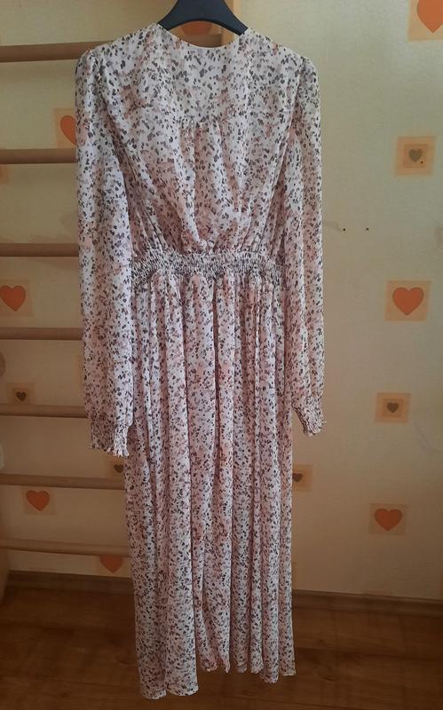 Шикарное шифоновое платье от MOHITOДлинна миди. Спереди с разрезом. Рукав длинный с манжетом на резинке, приталенное, пояс на резинке. Глубокое декольте. На подкладке Состояние: идеальное. Дефектов нет Размер 34( XS)