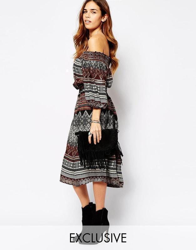 Сукня Glamorous зі спущеними плечима та принтом із фольклорними мотивами