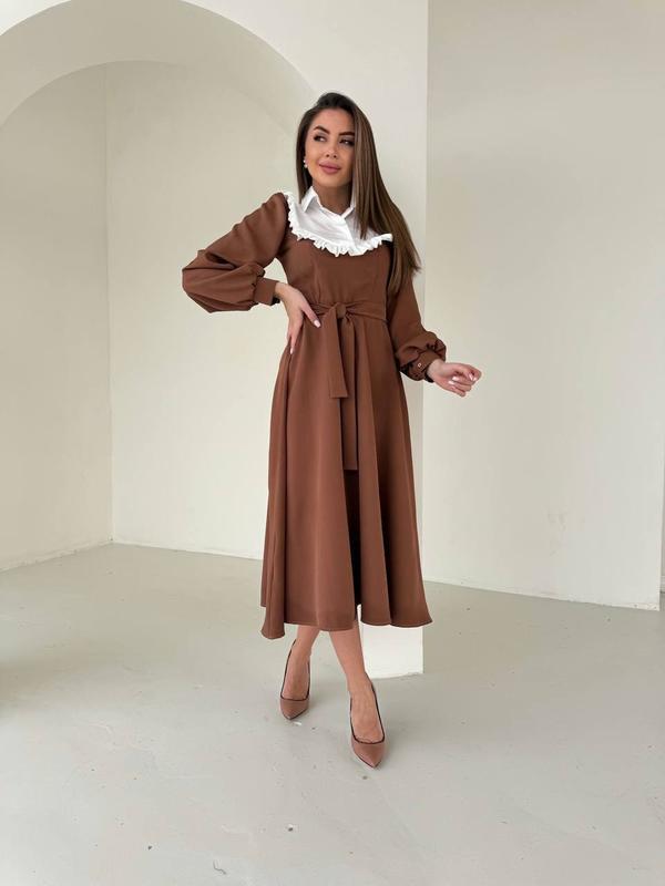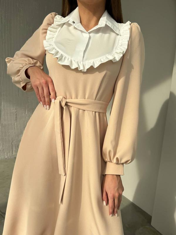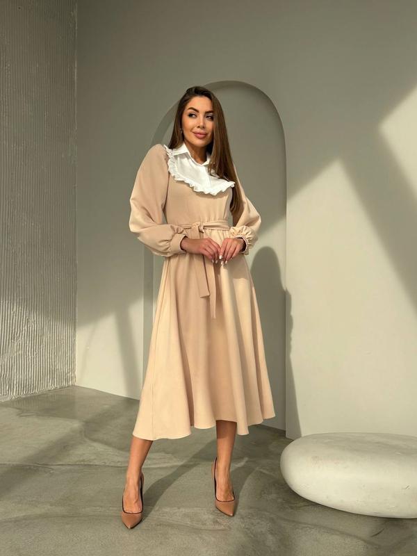 Романтична сукня в ніжних кольорах .Довжина міді .Застібується на кнопки .На талії резинка ,одягається під пояс .Сукня ,яка чарує і надає впевненість .Це те,що повинно бути в твоєму гардеробі .